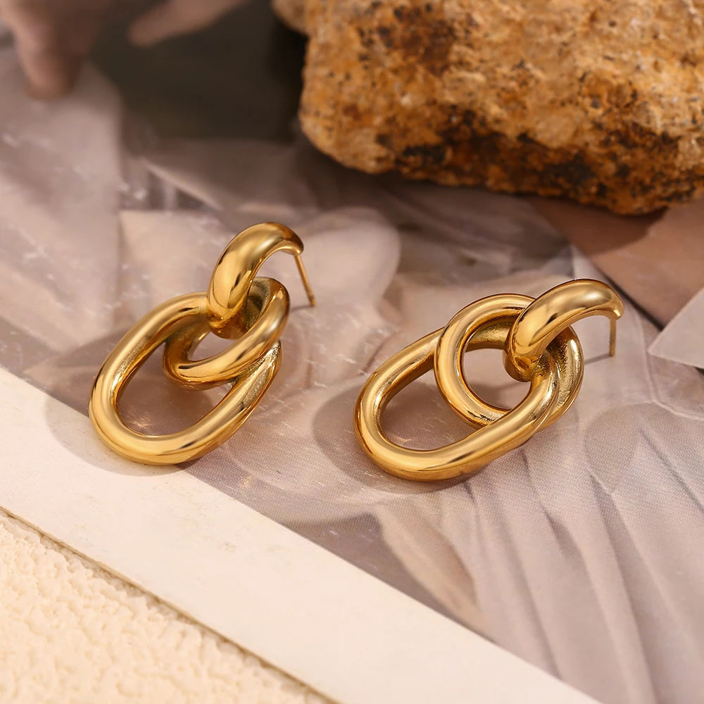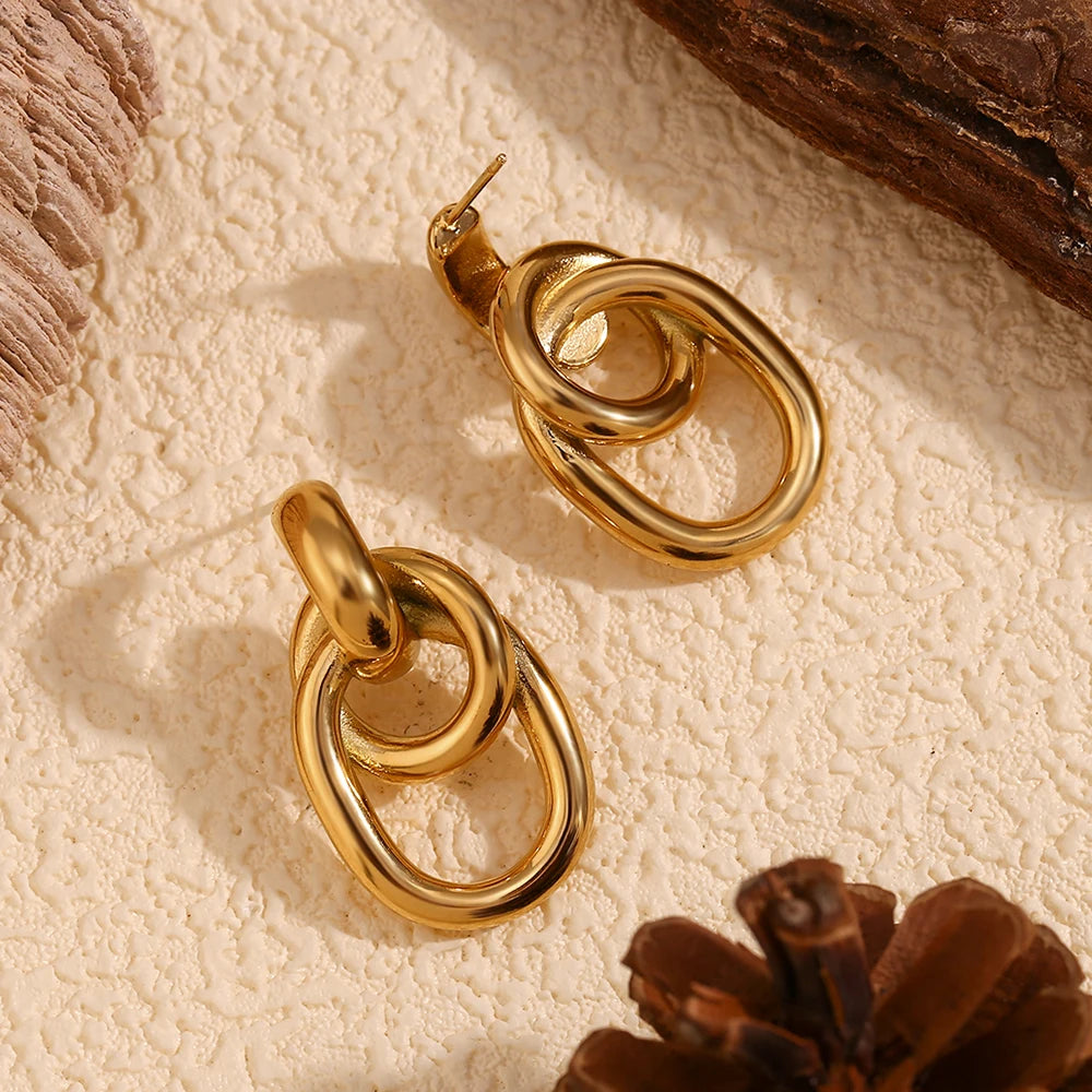Crafted in waterproof, tarnish-free stainless steel and plated in rich 18k gold, these earrings won’t fade, flake, or turn your ears green — ever. Light enough for all-day wear, bold enough to be noticed. These are the earrings that say “yes, I’m polished — but also chill.”