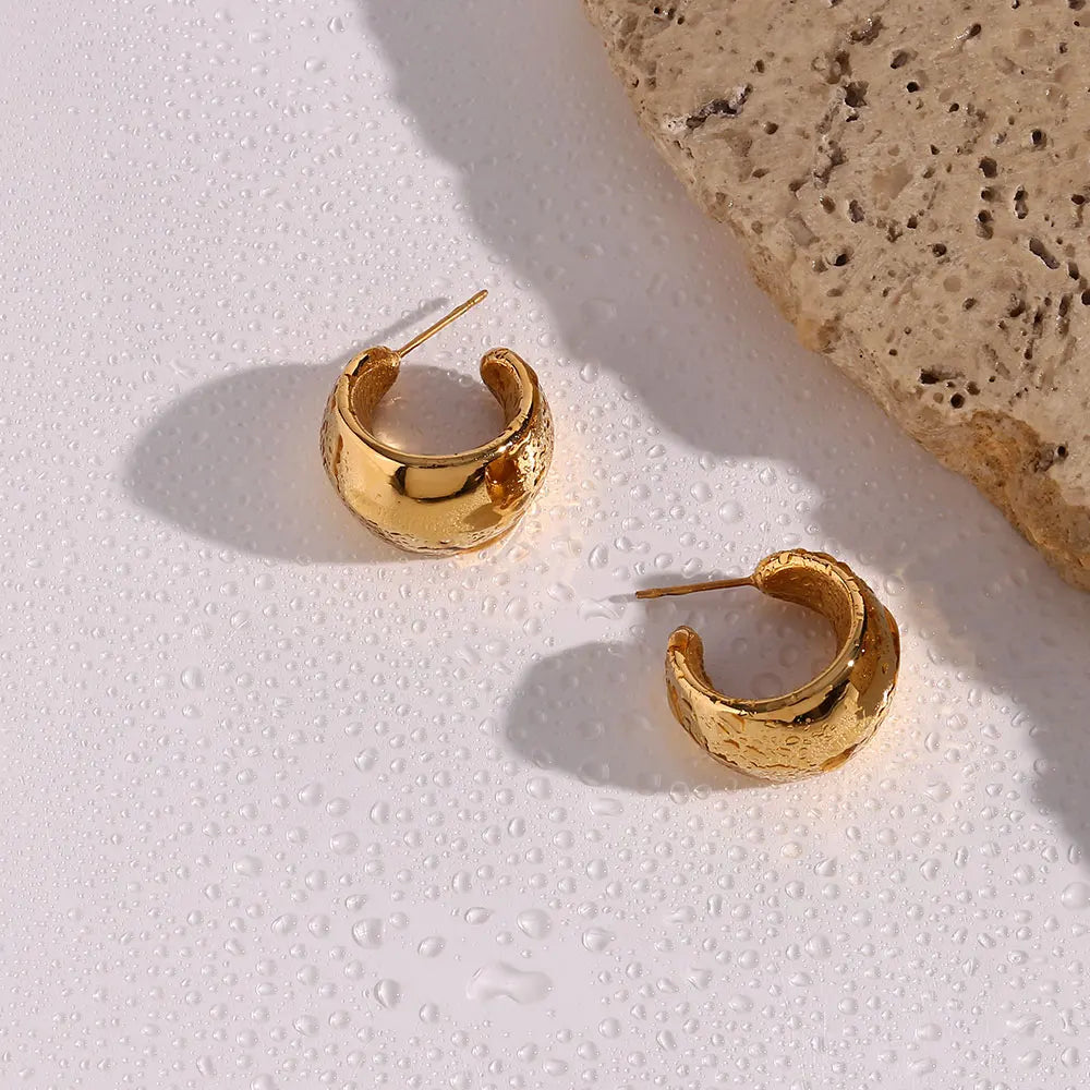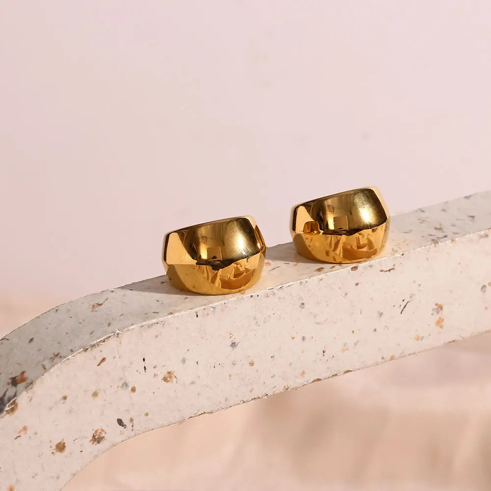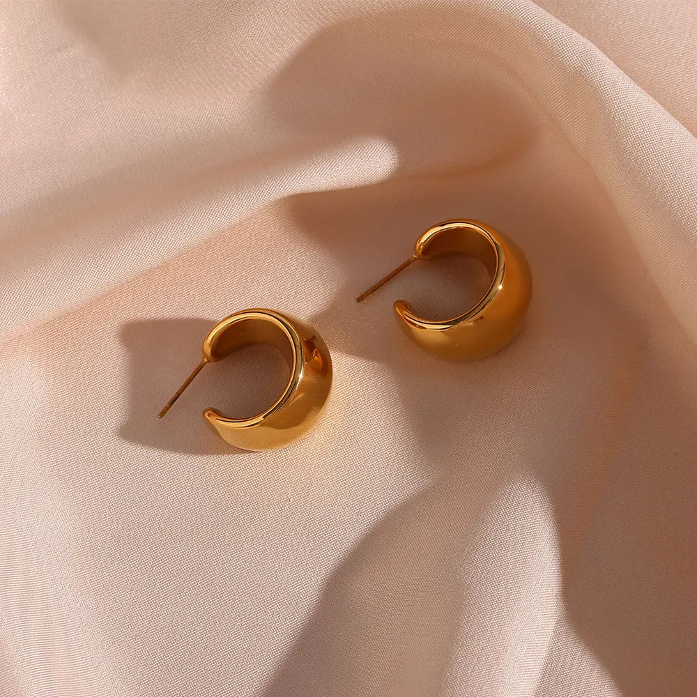 The Solenne Hoops reimagine the classic hoop in a polished, sculptural form — bold enough to make a statement, yet feather-light for all-day ease. Crafted in stainless steel and plated with 18K gold, they’re waterproof, tarnish-free, and endlessly radiant.